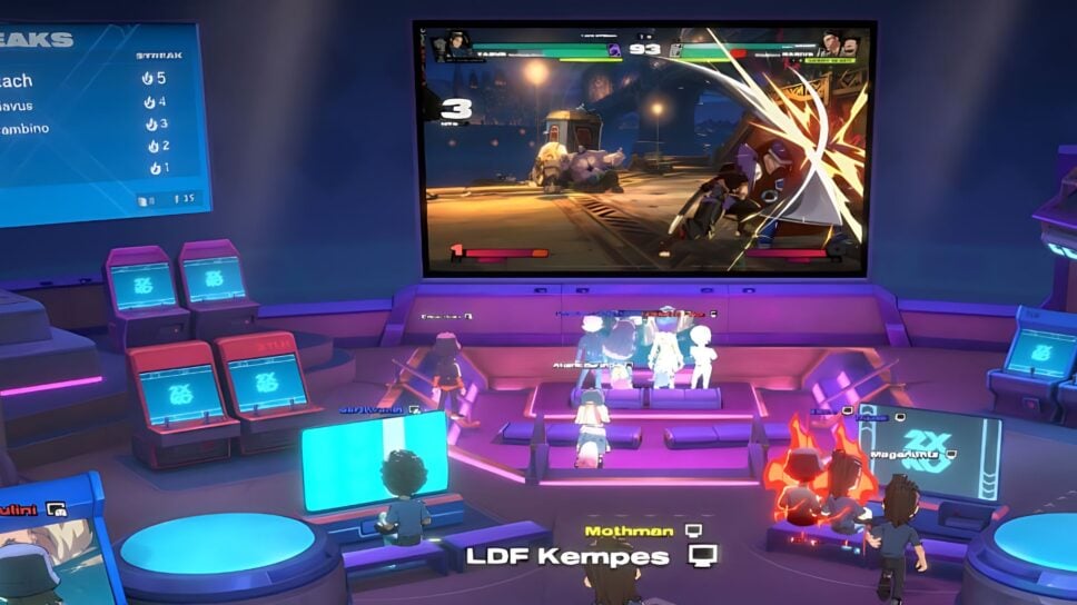 2XKO has a lobby system that showcases your customizable avatar. You walk around and watch other fights happen, then take a seat at a cabinet to begin your own match. In that lobby, you can add anyone before or after you’ve played them: