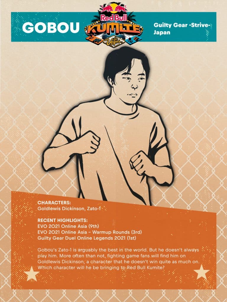 Widely considered to be the best Zato-1 player in the world, Gobou is a younger player on the scene at only 22. Although he became known because of his Zato-1 play, recently he's been playing more Goldlewis Dickinson. Can this dark horse come out with these under represented characters and bring out a win?