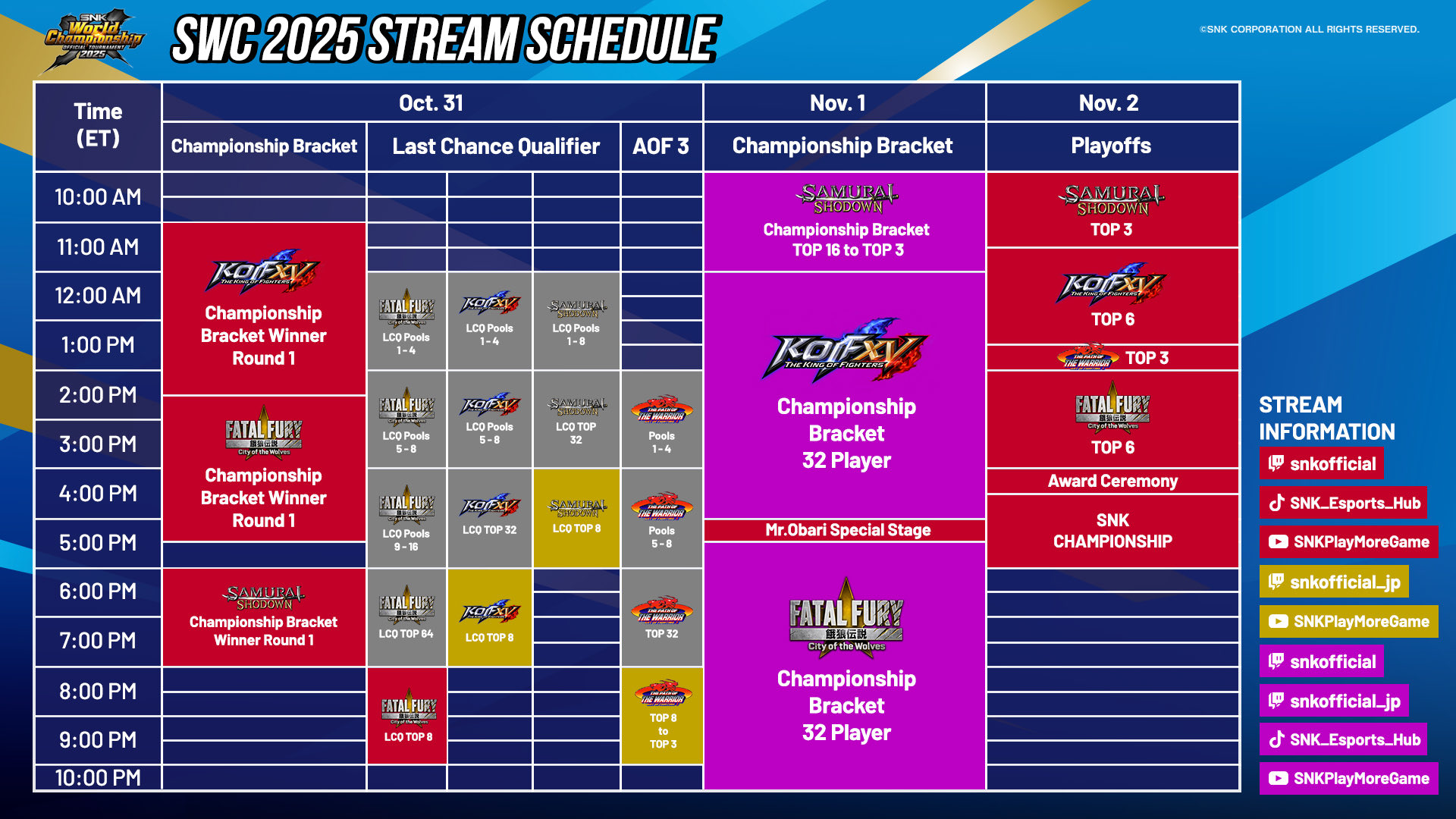 The detailed steam schedule of the SNK World Championship 2025 Finals is in the image below.