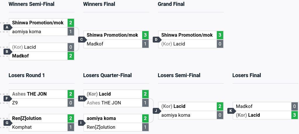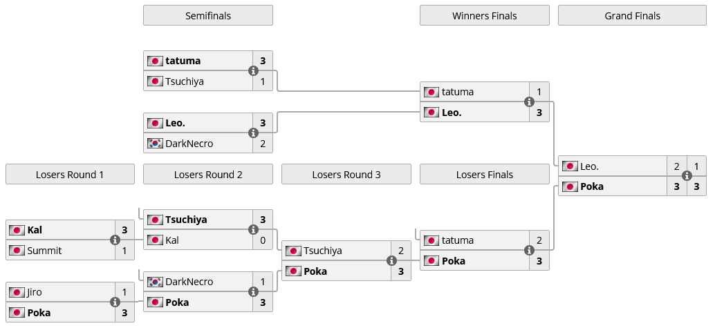 - In the losers brackets, Arslan Ash defeated KEISUKE and Book.