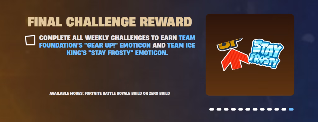 The only difference from the outset is that the winning team will unlock either the Frost-Ready Foundation or Exalted Frost Ice King for all Battle Pass owners. We’ll cover that more later, but the first step in this process is to decide whether you are Team Foundation or Team Ice King.