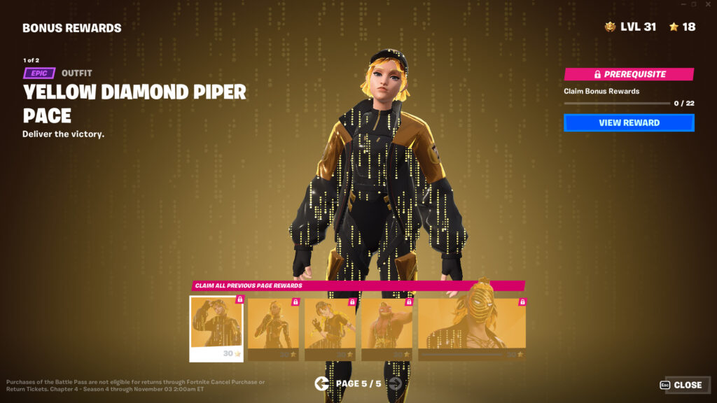 You must complete the Battle Pass to access the Heisted Jade, Lost Amethyst, and Yellow Diamond Super Styles. This requires you to reach level 100 and earn enough Battle Stars to unlock every item within the Chapter 4 Season 4 Battle Pass.