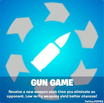 ![]() | Gun Game | Receive a new weapon each time you eliminate an opponent. Low rarity weapons yield better chances. |