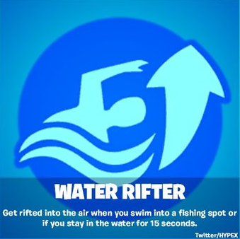 ![]() | Water Rifter | Get rifted into the air when you swim into a Fishing Spot or if you stay in the water for 15 seconds. |