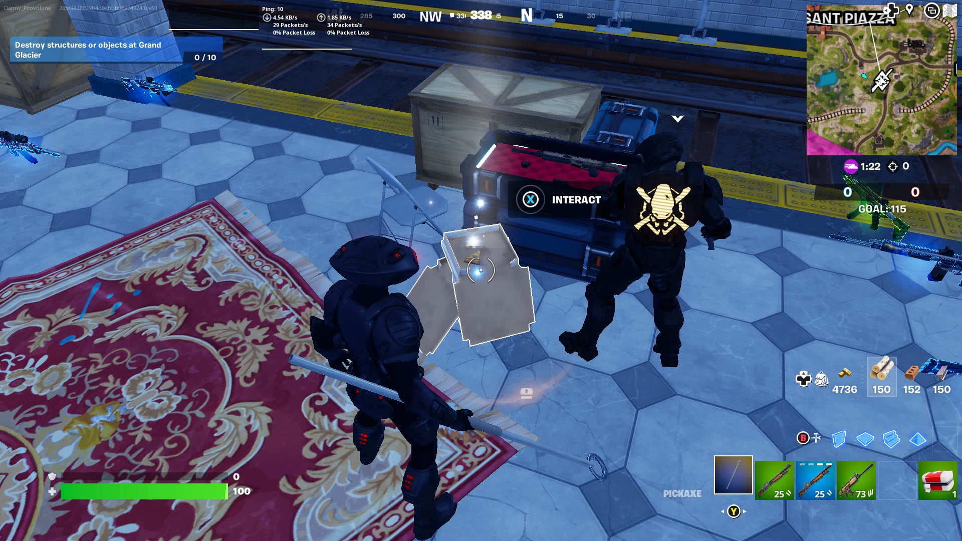 Those exclamation points on the Fortnite mini-map indicate empty pizza box locations. Once you find one, you must stand before the pile and hold the corresponding key or button. Repeat this process two more times, and you will complete the challenge.
