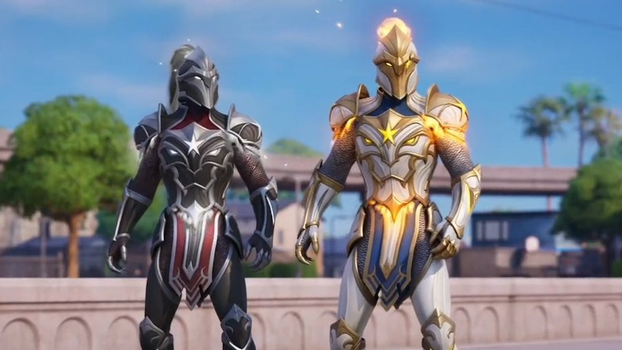 You will notice CouRage’s lion crest branding prominently throughout the collaboration, such as on his chain, Pickaxe, Back Bling, and the knight version of his skin. Beyond the skins that capture CouRageJD’s likeness, the crossover includes a “Final Boss” version. This consists of a black-and-red or white-and-gold knight, fully armored, with the lion logo embedded in the chest plate.