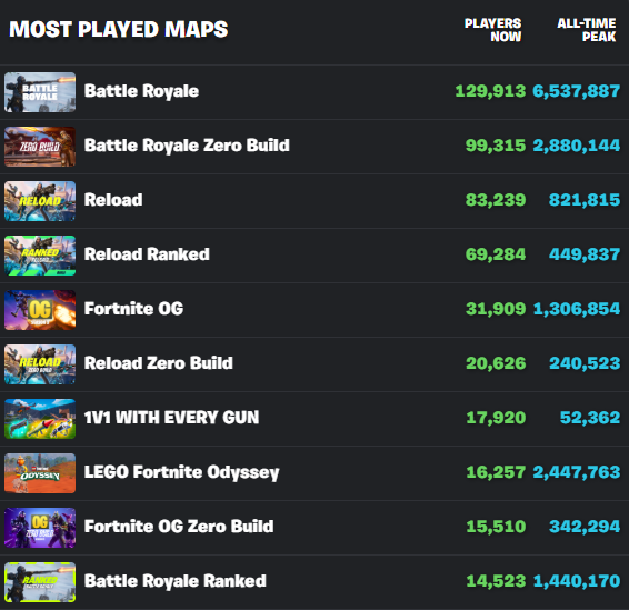 Beyond the unverified reports, it’s worth noting that Reload is one of Fortnite’s most popular game modes. Per Fortnite.GG, both the ranked and unranked average between 50,000 and 90,000 players, depending on the day.