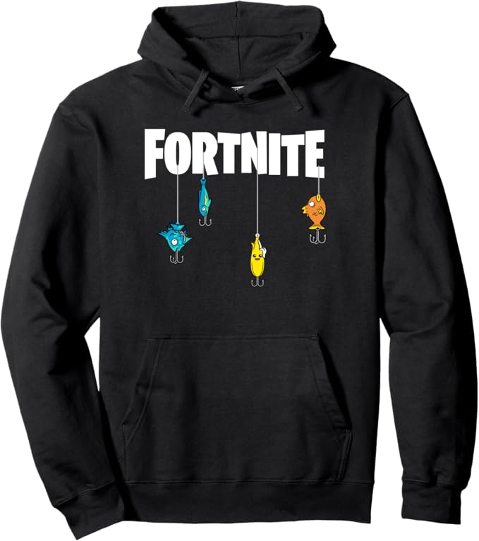 For those who enjoy a more minimalistic design, this hoodie is perfect. With black shading and a bunch of Floppers hanging from a white logo that says “Fortnite,” this sweatshirt is both comfortable-looking and stylish.