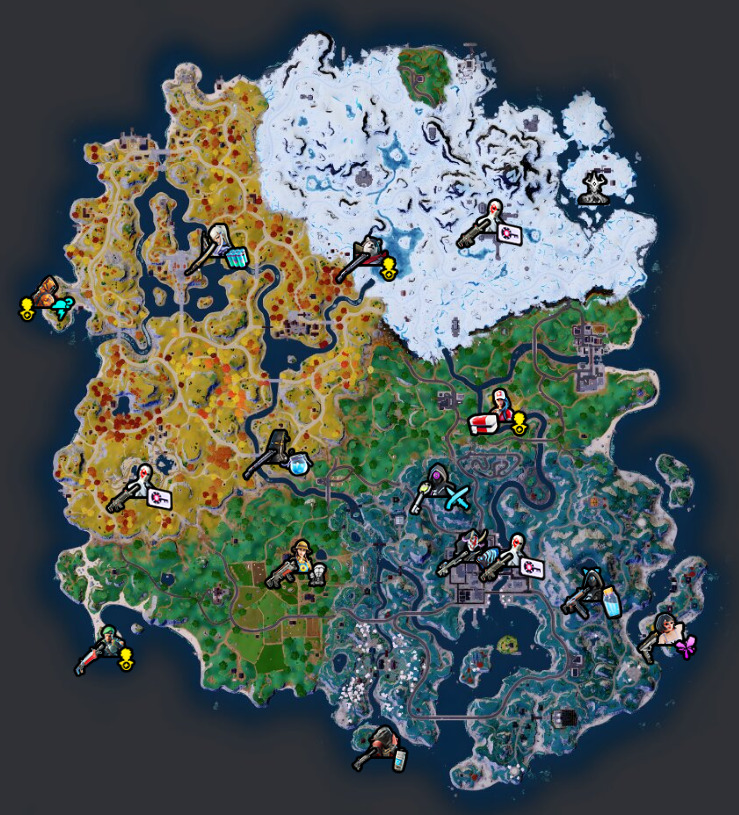 Here’s a map per Fortnite.GG that shows all NPC locations in Fortnite Chapter 4 Season 2: