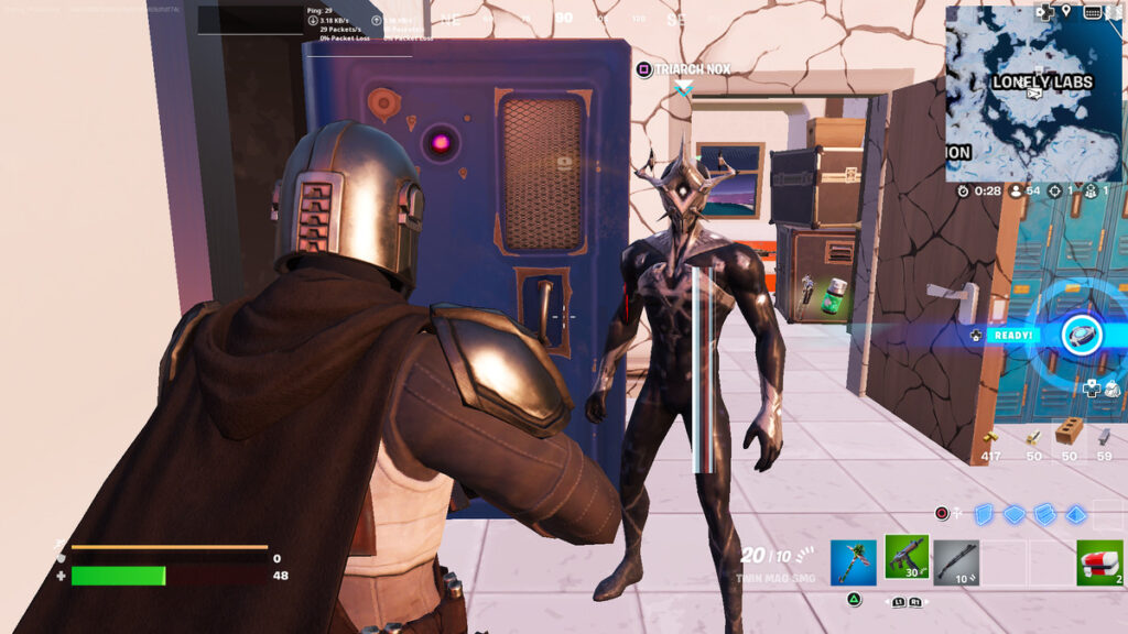 Also, you can find the Triarch Nox boss NPC in Fortnite at the Lonely Labs location. This boss remains neutral until you access a computer nearby, at which point Triarch Nox will attack. However, you will not receive anything notable for defeating this character.