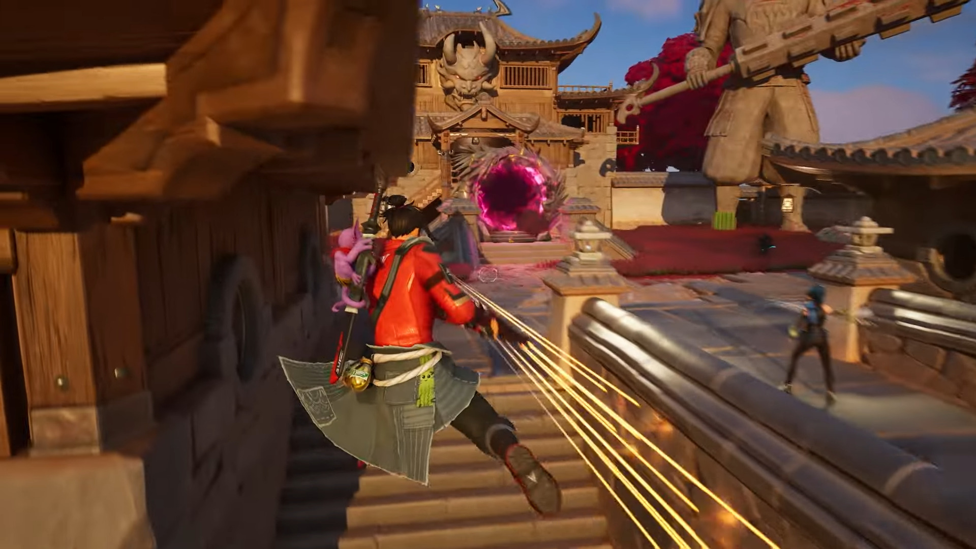 The cinematic trailer makes the landscape much more visible and vibrant. It showcases oriental-inspired towns alongside a more natural landscape of pink and purple trees, some of which are humanoid. The trailer concludes with a battle against the new samurai boss characters.