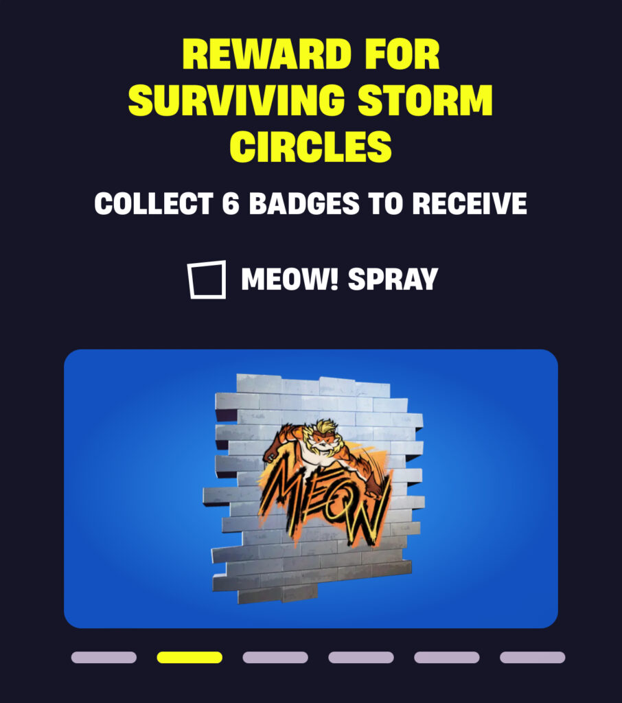 - Meow! Spray – Collect 6 Badges (survive 18 Storm Circles)