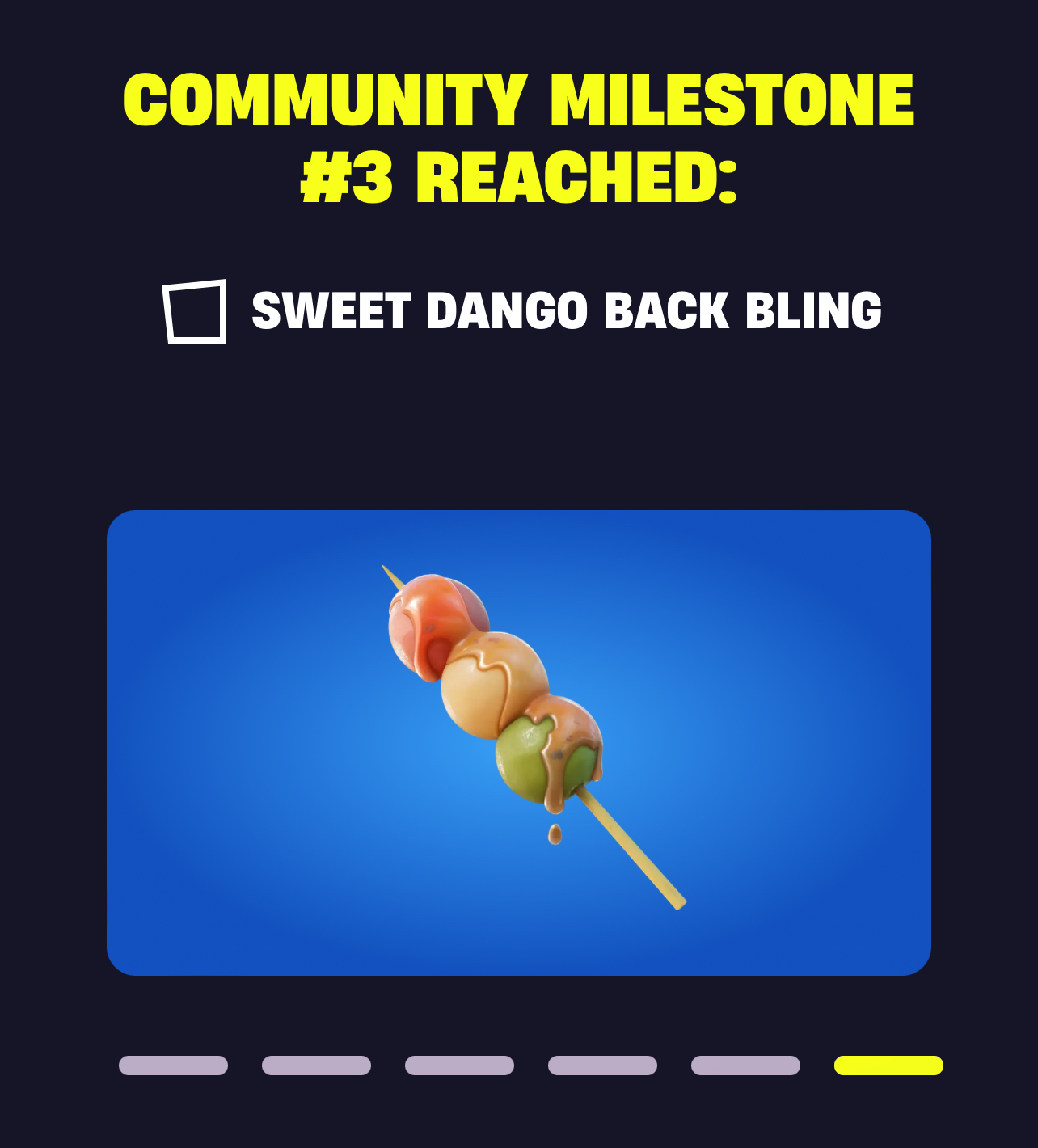 - Sweet Dango Back Bling – Reach Community Milestone #3 (27 million Storm Circles survived)
