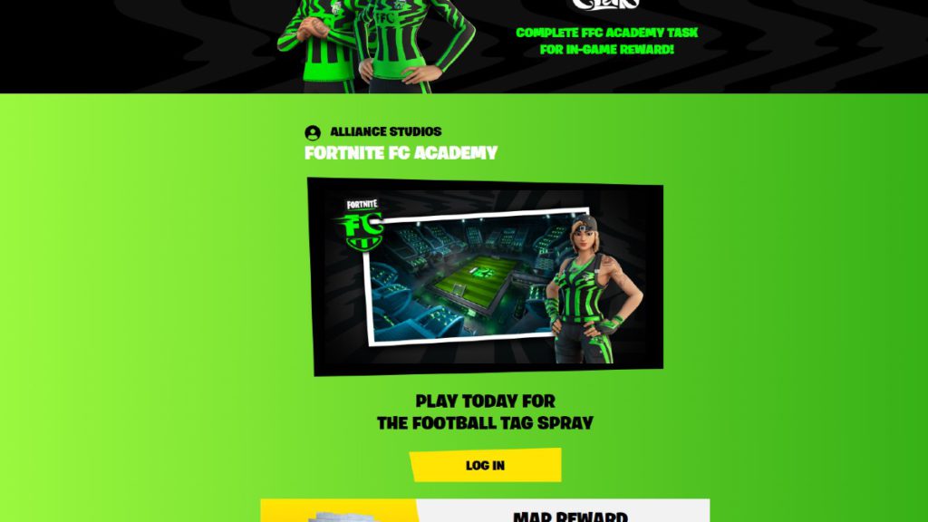 Epic Games has launched the Fortnite FC Academy website, which is now live. Those who visit the website can log in and complete a challenge to unlock the FFC-themed Football Tag Spray. You can only complete the quest on the Fortnite FC Academy island (map code ), which we will dive into next.