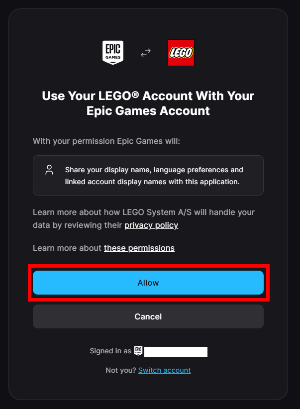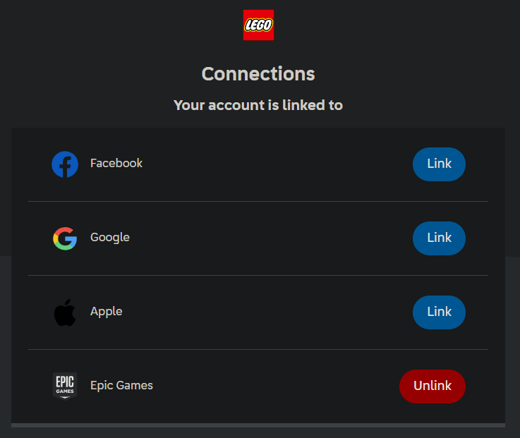 The steps below explain how to connect your Epic Games account to your LEGO account: