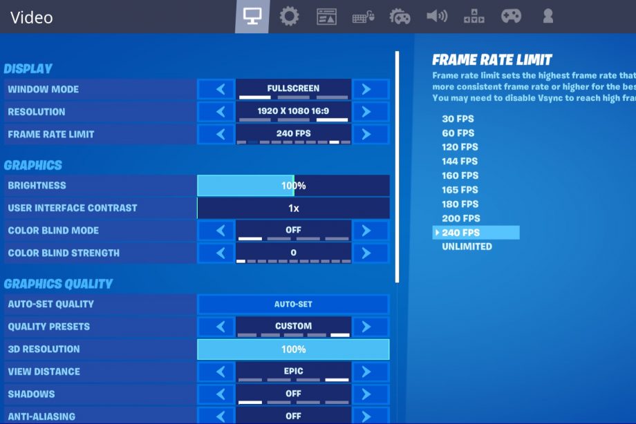 As for your frame rate, this somewhat matters on the hardware you have on your PC and the type of monitor you own. If you have the hardware to keep a steady 240 frames per second and also own a 240 FPS monitor, then set your frames to 240.