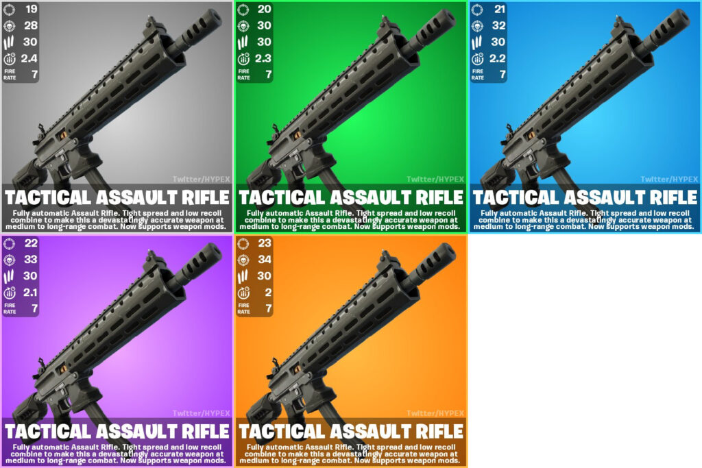 Although Battle Royale did not receive a significant update, a legacy weapon has re-entered the loot pool. The Tactical AR, which debuted in Chapter 1, is back in the mix. It spawns in Common, Uncommon, Rare, Epic, and Legendary rarities in locations such as Chests and on the ground.