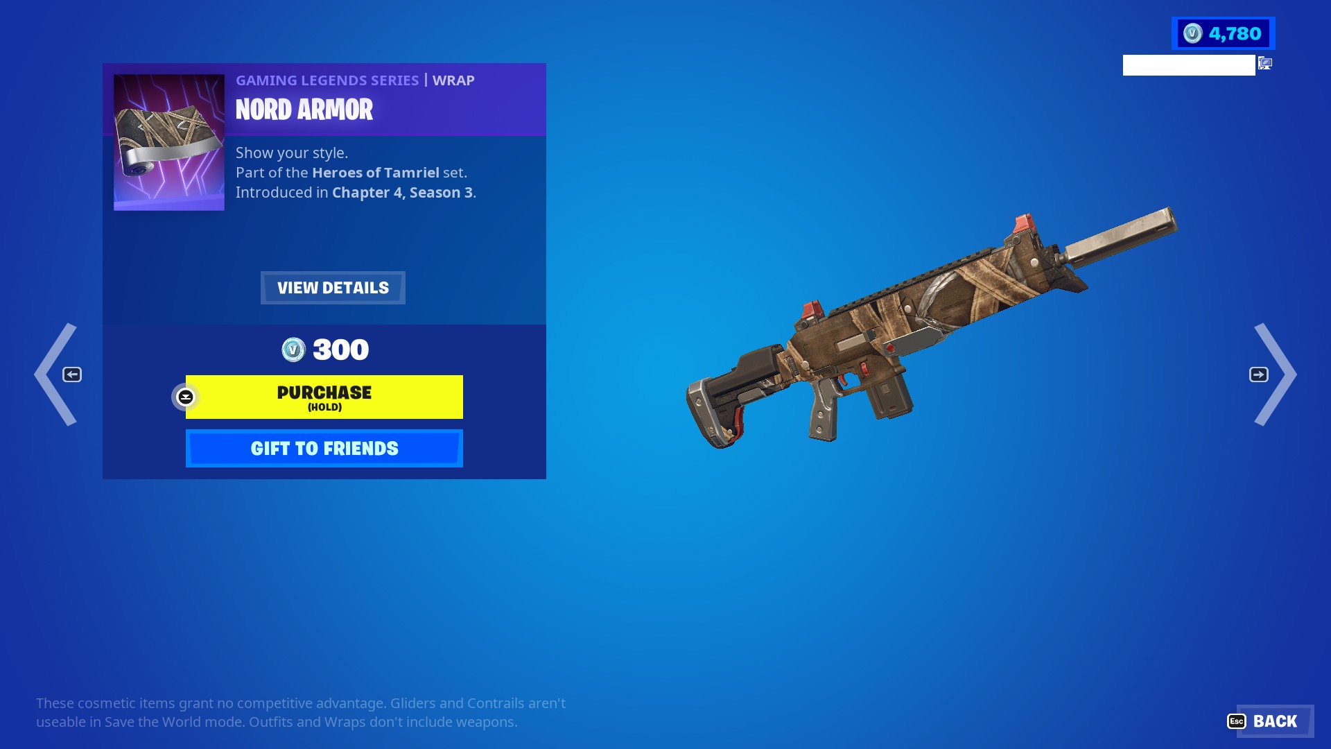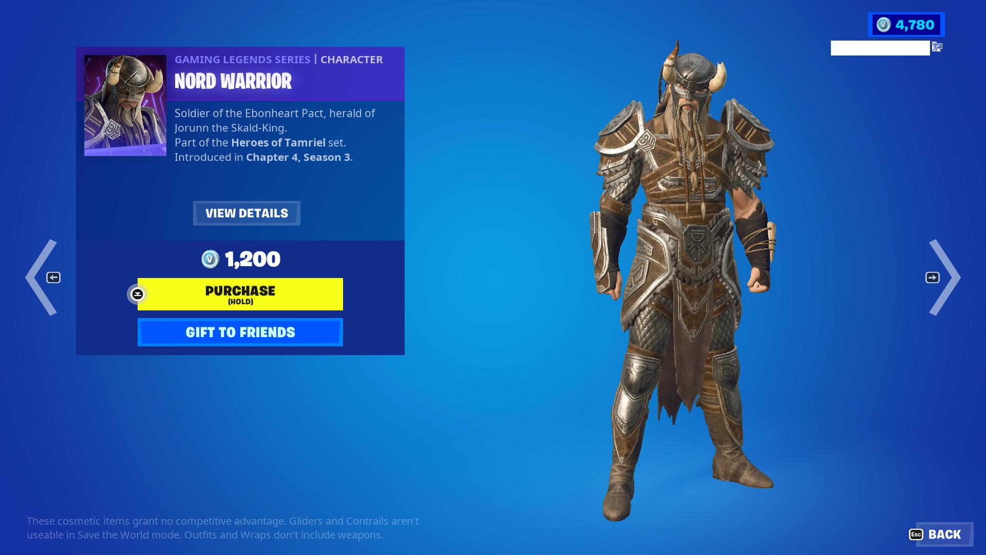 The Elder Scrolls items are part of the Gaming Legends Series. This cosmetic classification also includes Master Chief, Street Fighter characters, Resident Evil characters, Destiny characters, Gears of War characters, Isaac Clarke from Dead Space, Ezio from Assasin’s Creed, and more.