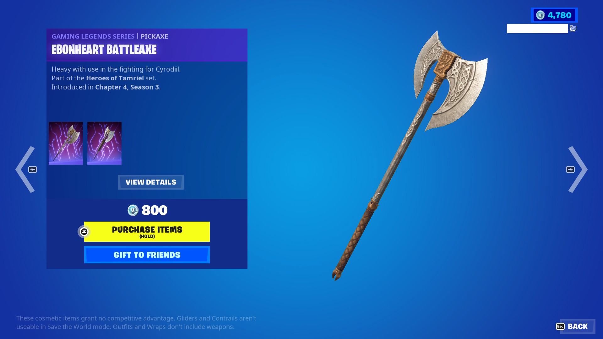 - Eronheart Battleaxe Pickaxe and Back Bling – 800 V-Bucks