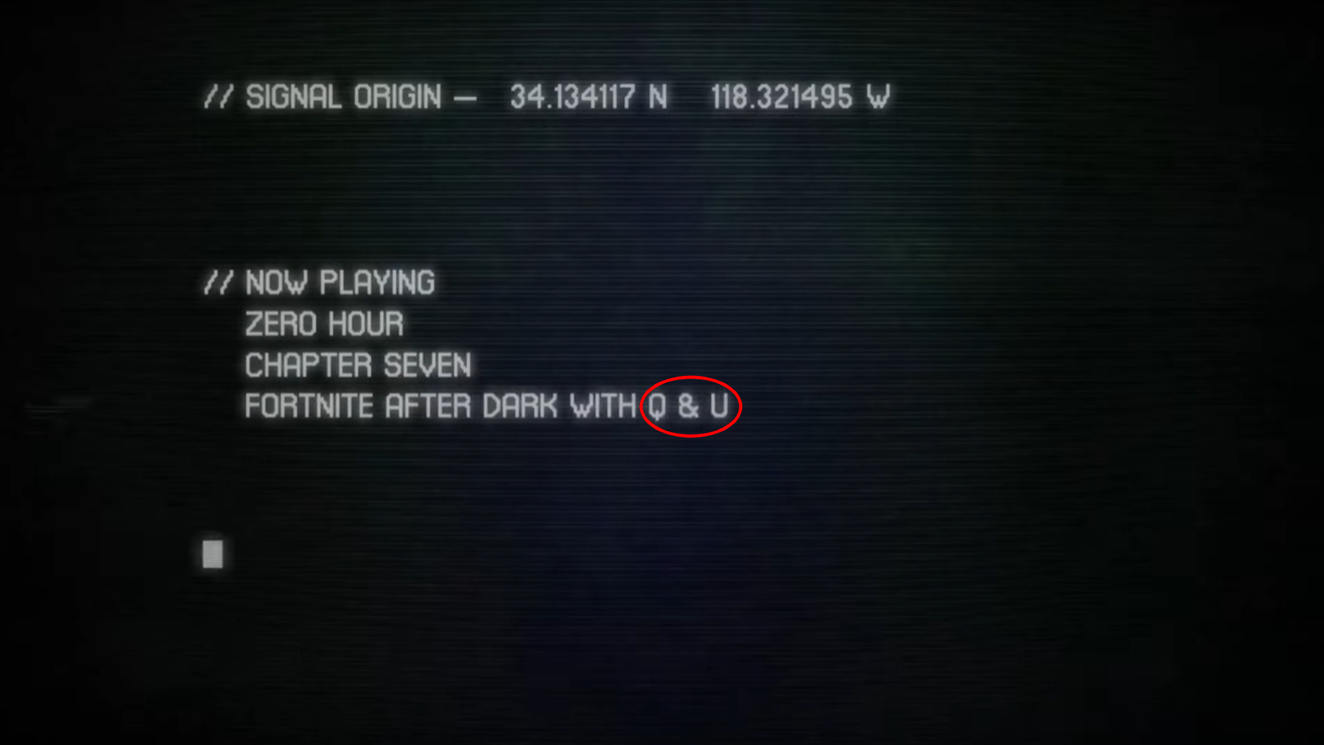The first inkling that Chapter 7 would feature a Kill Bill crossover came from teasers posted by content creators. Although a cryptic video merely promoting a playtest for the new Chapter, the on-screen text switches from “Q & A” to “Q & U.”