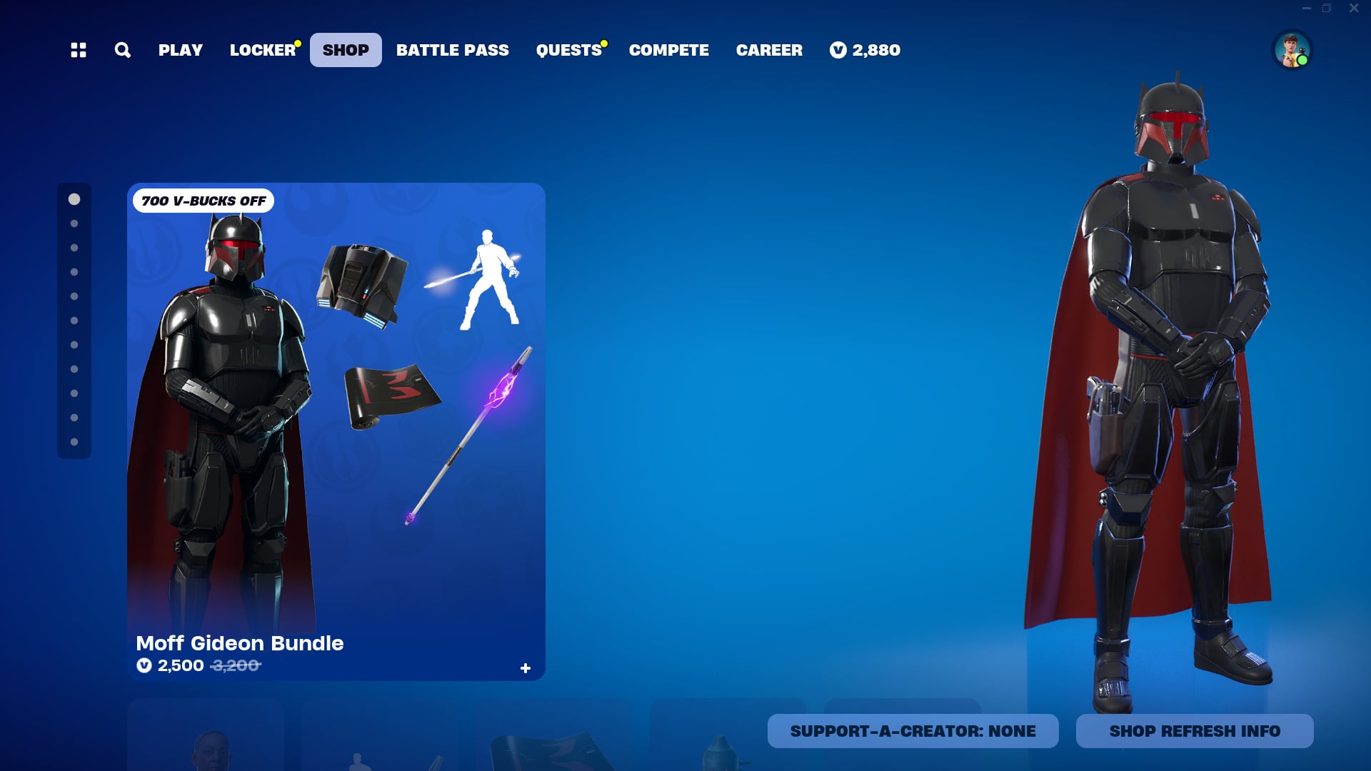 - Moff Gideon Bundle (includes the previous three items) – 2,500 V-Bucks