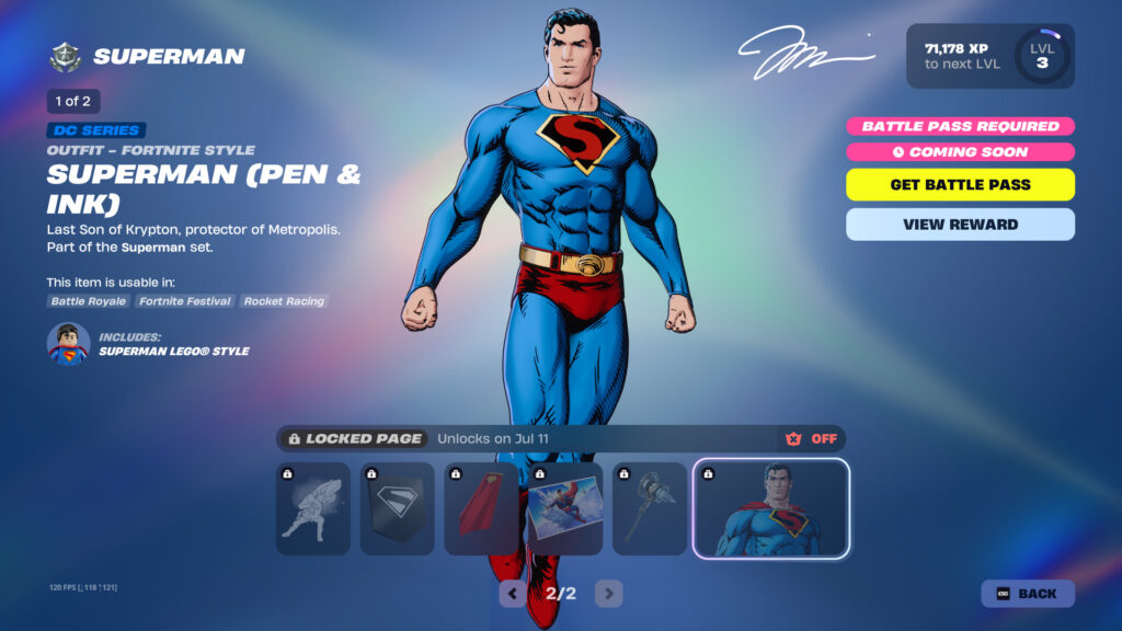 Here is a look at the two Superman Battle Pass pages and what rewards will be available on Friday the 11th: