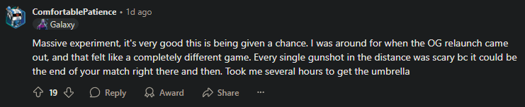Reddit user ComfortablePatience indicated that the initial relaunch of Fortnite OG brought back the true OG feeling, where every decision mattered. Others said it's a simple request to play against other players as opposed to bots in a PvP game mode.