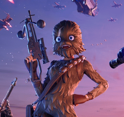 The final two characters depicted in the key art are a Wookie version of the iconic Cuddle Team Leader Outfit and a Jedi version of Fortnite’s Evie character.