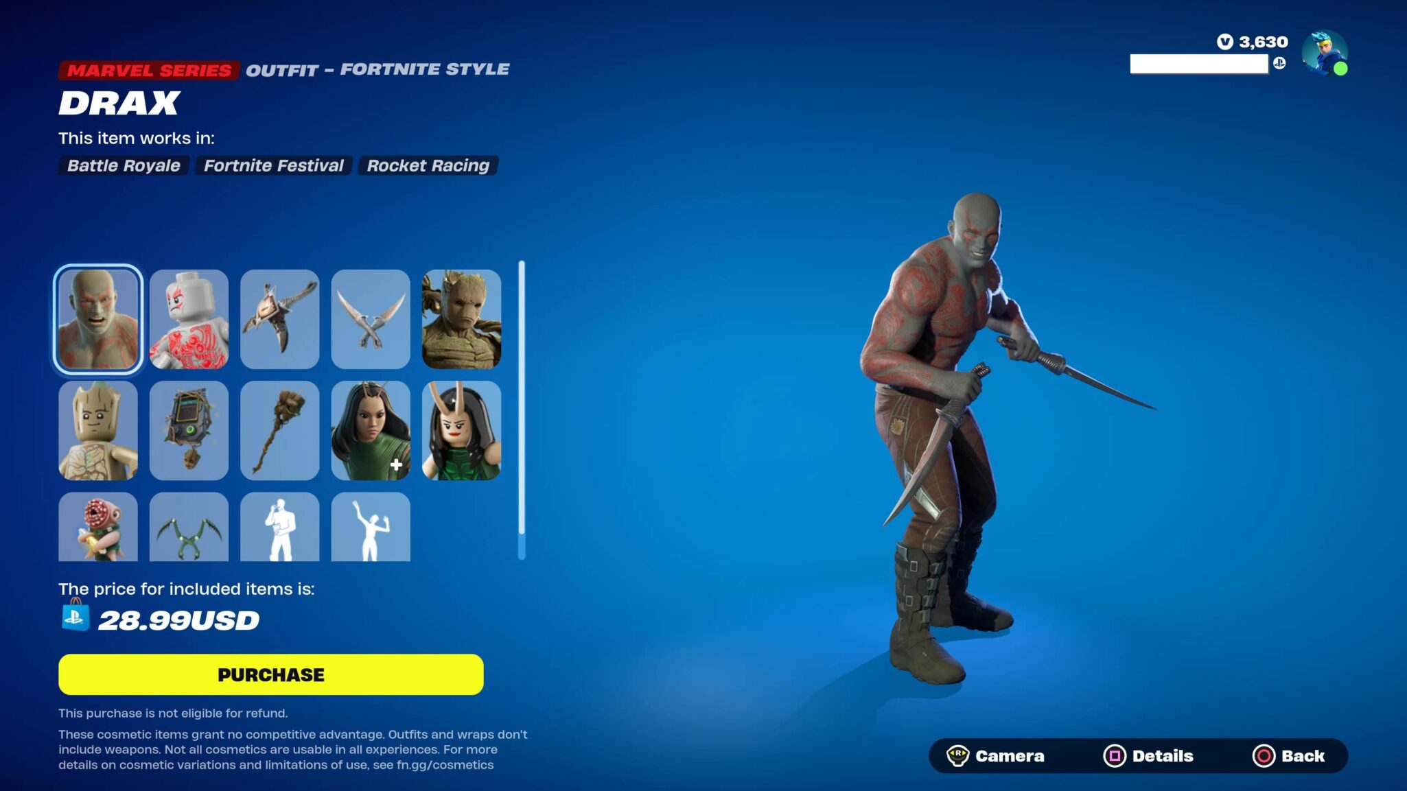 Here is a complete list of what’s included in the Guardians of the Galaxy Fortnite bundle: