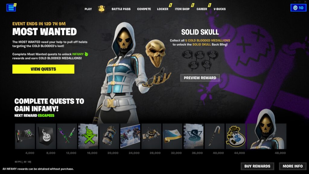 Fortnite’s Most Wanted event is off and running with a lot to offer. Those who participate in the event have access to an entirely separate Most Wanted questline that will help you unlock the event-exclusive items. You must earn Infamy by completing the Most Wanted quests to unlock the items.