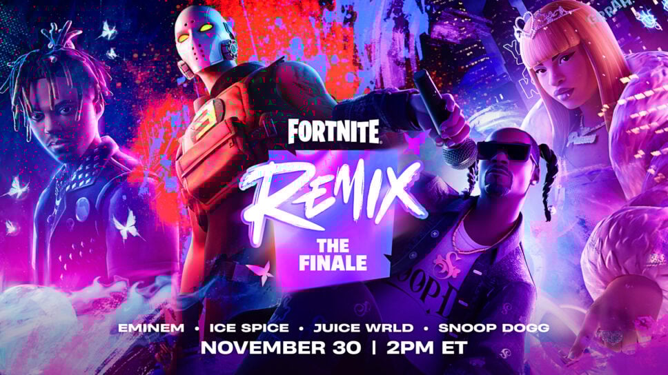 The Fortnite Remix: The Finale live event is rapidly approaching, kicking off at 2 p.m. ET on Nov. 30. Players can expect a concert spectacular similar to what Epic Games has produced before with the Marshmello and Travis Scott live events. Eminem, Ice Spice, Snoop Dogg, and Juice WRLD will perform in-game as Fortnite switches to Chapter 6 in less than 24 hours, but how long will the Fortnite event last? Here’s what you need to know!
