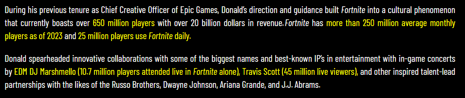 Furthermore, it states, “Fortnite has more than 250 million average monthly players as of 2023, and 25 million players use Fortnite daily.” In addition to the raw player count numbers, the information included viewership numbers for the Marshmello event (10.7 million) and the Travis Scott event (45 million).
