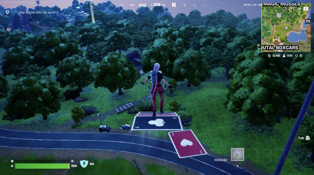 To collect mineral samples in Fortnite, you will need to use the Plasma Burst Laser. First, head to the Black Market location just south of Magic Mosses. This building can be found in the woods that surround the point of interest (POI).