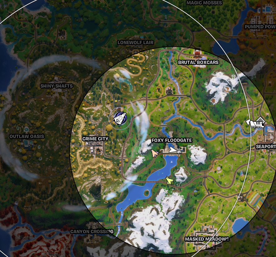 In our limited experience, the Rift often spawns near the middle of the map. A good spot to land is Foxy Floodgate, since it’s the point of interest (POI) closest to the center and offers Launch Pads for mobility. Otherwise, as mentioned in the previous tip, try to land on a mountain with a Launch Pad.