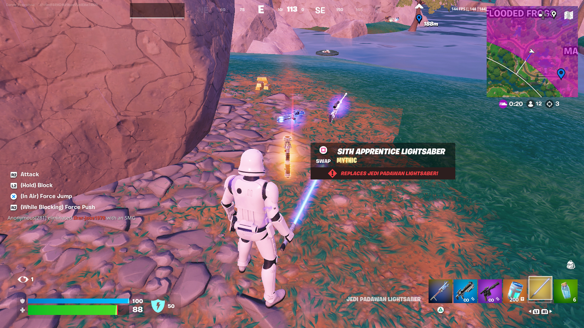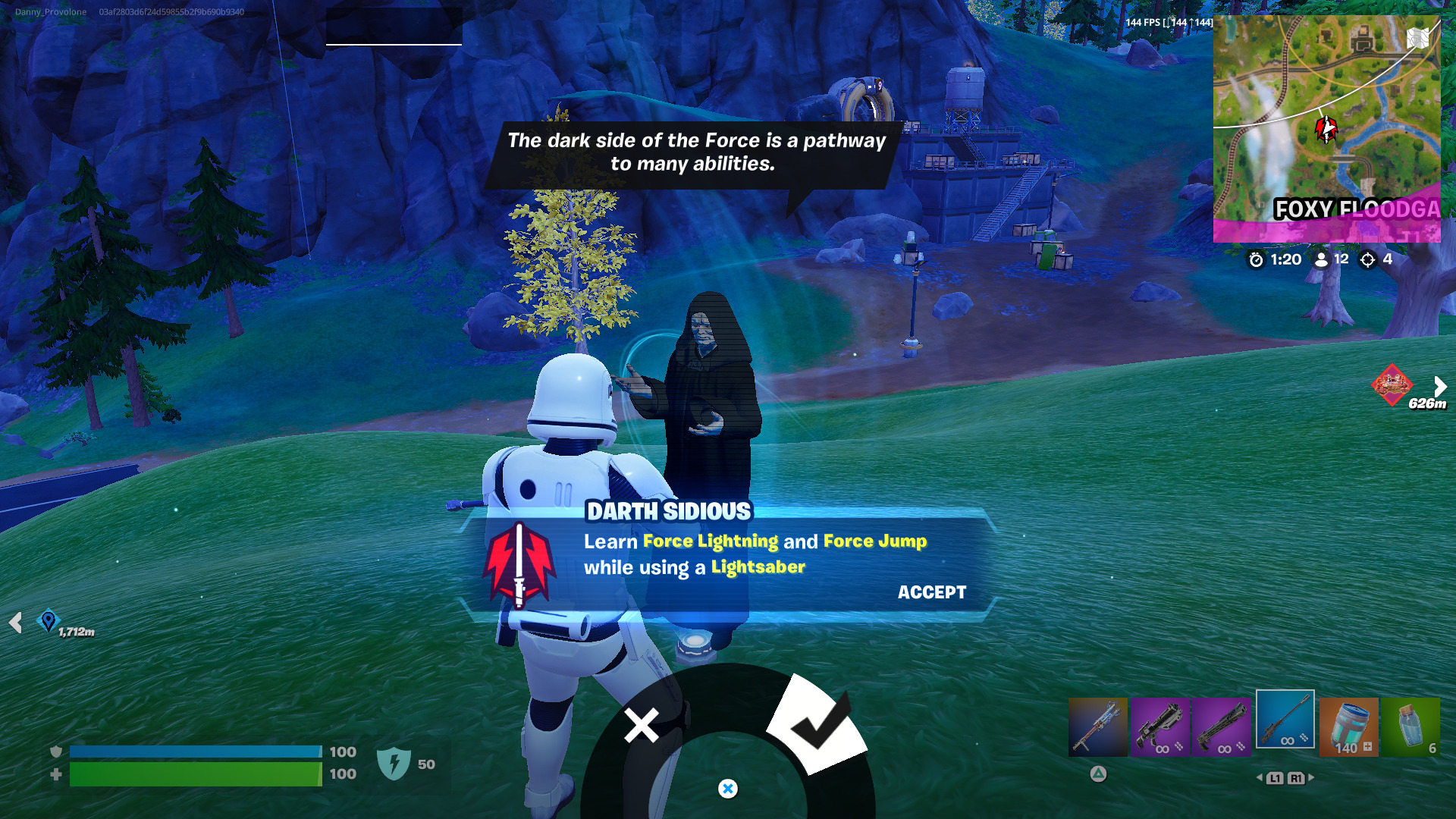 Using the Lightsaber in Fortnite is always a fun experience. It grants you many abilities beyond attacking, including a double-jump and blocking enemy fire. You will also obtain their respective force abilities if you trained with Darth Sidious or Rey.