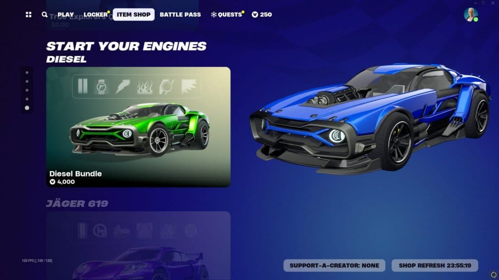 The system Epic Games has put in order here works pretty well too. Right now, there are two cars that you can buy for Rocket Racing in the Fortnite Item Shop. Both the Cyclone and the Jäger 619 Bundles are available via V-Bucks.