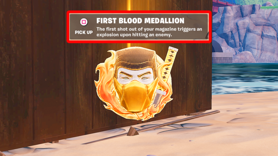 The function of the First Blood Fortnite Medallion will cause the first shot in your magazine to explode when it hits an enemy. It’s not the best item, but it’s fun and worth trying at least once. However, we wouldn’t suggest going too far out of your way to acquire it.