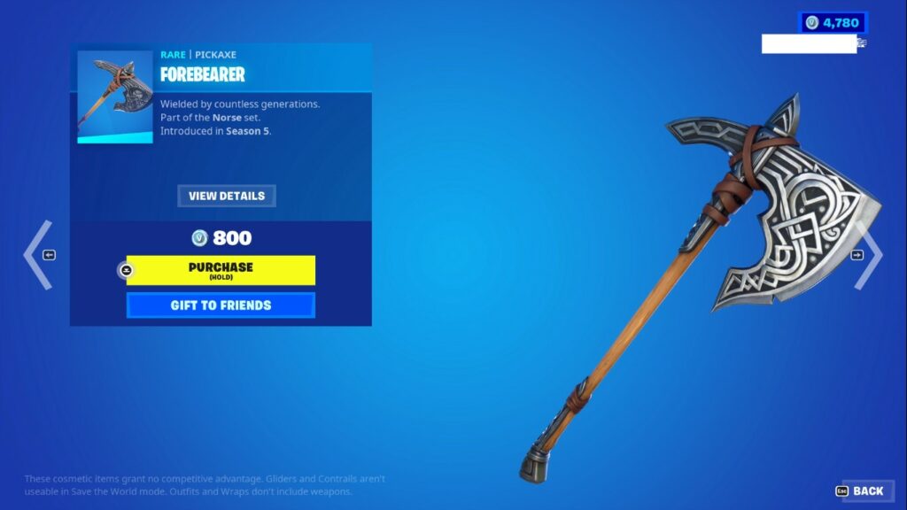 In this case, the item is 800 V-Bucks, so you will need that much to add it to your inventory. Otherwise, a friend can gift you the Forebearer Fortnite Pickaxe if you don’t have enough V-Bucks.