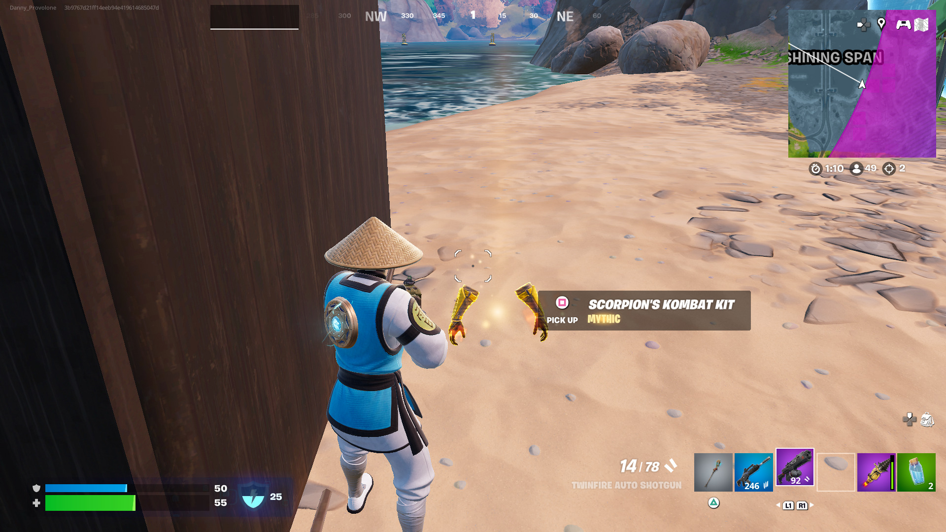 When Scorpion spawns, your next step is to obtain his Mythic, which is not easy. He has a lot of health and can deal a lot of damage in return. We would advise doing this in Battle Royale, where you can at least build some walls between you and Scorpion.