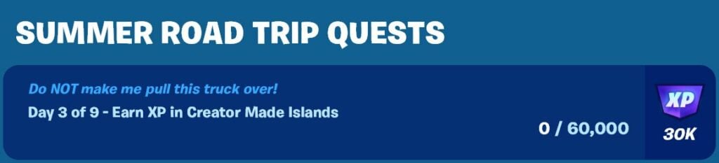 Although the complete Questline is unknown at this point, Epic’s post indicates you must simply earn XP playing creator-made game modes and other Epic-created game modes.