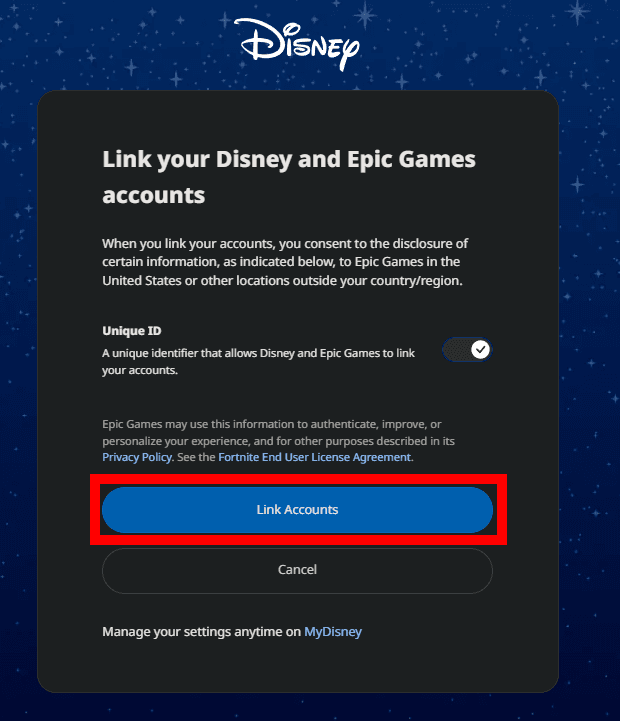 Step-by-step guide for linking MyDisney to your Epic Games/Fortnite account
