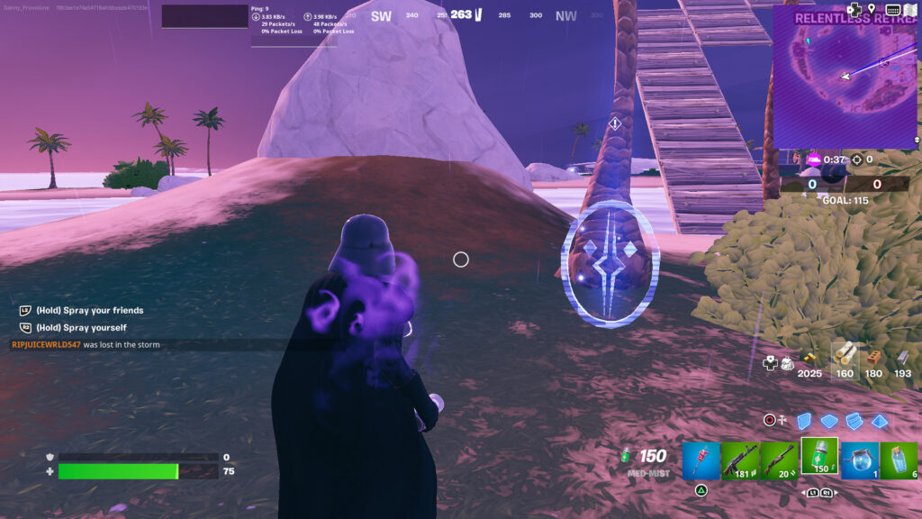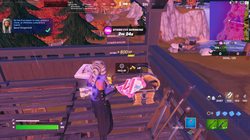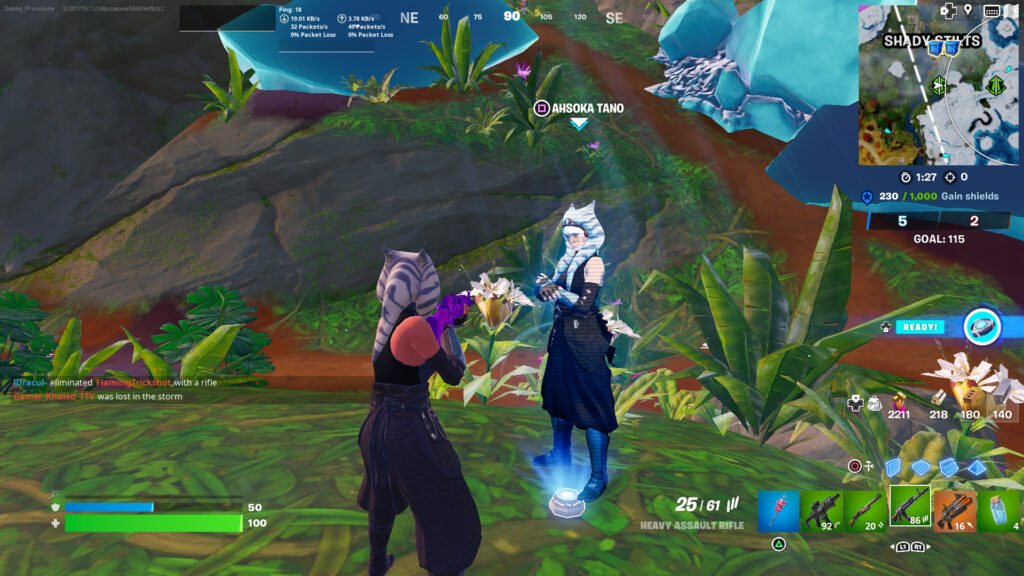 This Fortnite Ahsoka Tano Quest involves a definite time commitment, requiring you to survive five Storm Circles while carrying a Legendary, Mythic, or Exotic weapon.