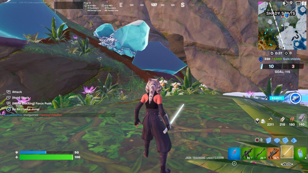 This Ahsoka Tano Quest requires you to gain 1,000 Shields, which is relatively straightforward. You will start each match with zero Shield, and you can gain up to 100 using Shield Potions, Mini Shield Potions, Slap Splashes, and other various healing items.