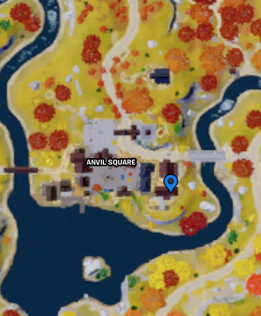 You can find the hidden Jaeger’s Family Basement by heading to the Anvil Square location in a Fortnite match. Once you’ve arrived, head to the house on the above map. Then, navigate down the stairs and into the hidden room, and this challenge is done.