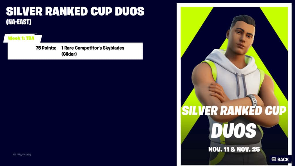 Before you can compete, you must ensure that you have applied two-factor authentication (2FA) settings to your Epic Games account. Additionally, you can only compete in the tournament that reflects your rank in Ranked Mode.