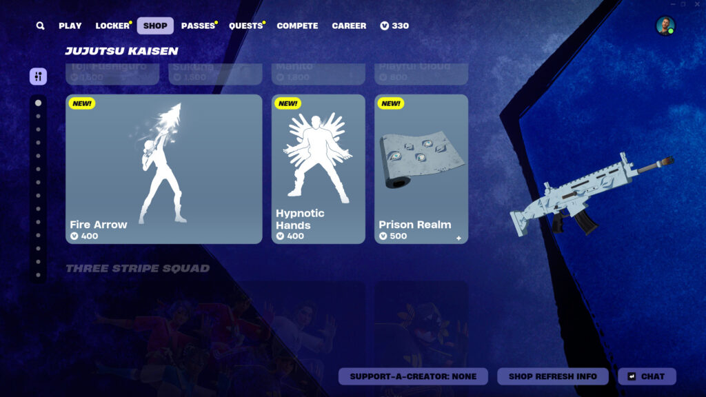 Here is a complete list of the Jujutsu Kaisen Fortnite skins, items, and how much they cost: