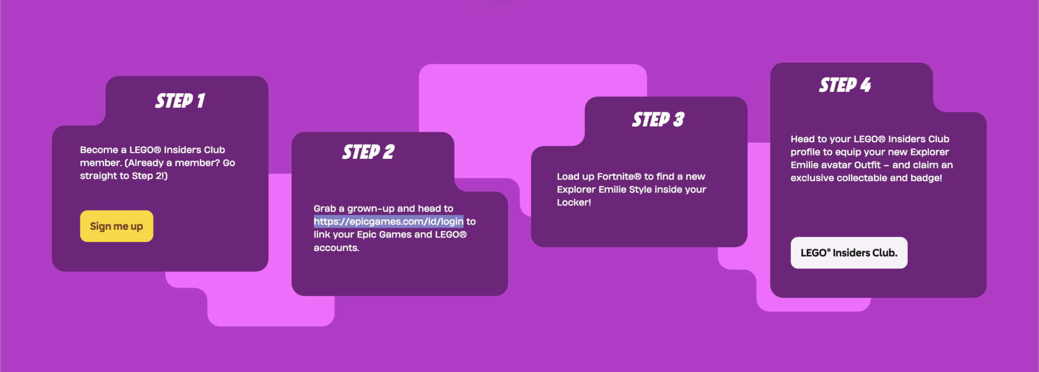 Claiming your free LEGO Insiders Club Fortnite skin is simple. To start, you need to create an account. Let’s talk about that first.