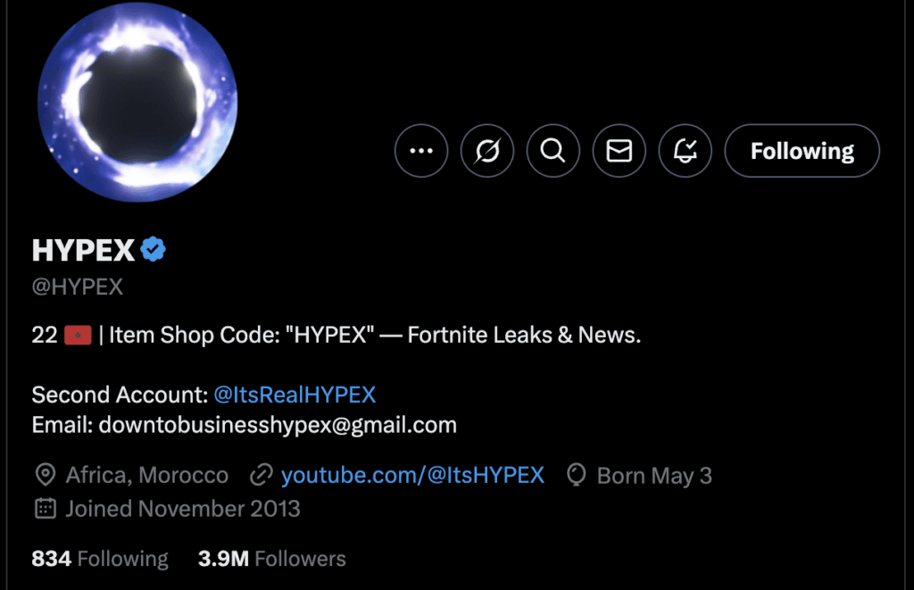 If you follow any Fortnite news online, then you have probably seen Hypex's X page. The leaker is constantly posting Fortnite news and leaks. In fact, it is safe to say that Hypex might be the most popular Fortnite leaker on the internet.