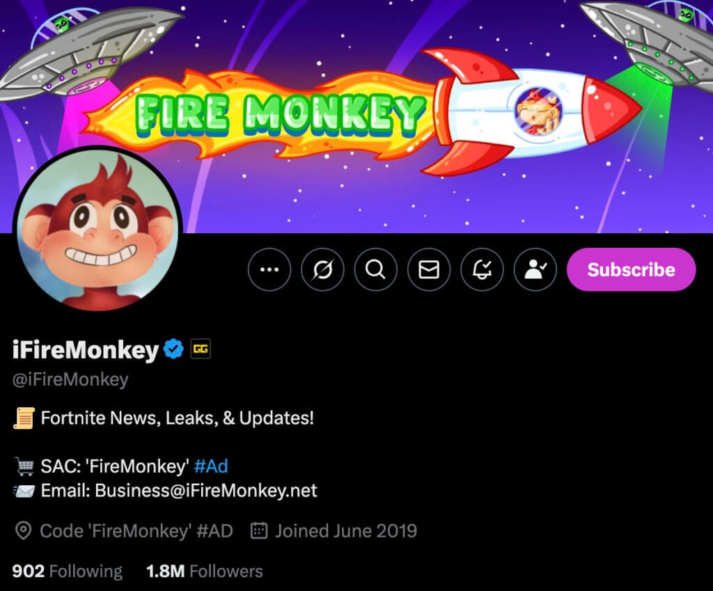 Another leaker that seems to be known by everyone in the Fortnite community is iFireMonkey. With almost 2 million followers on X, this leaker is quite often cited as the initial leaker of many popular leaks within the Fortnite community.