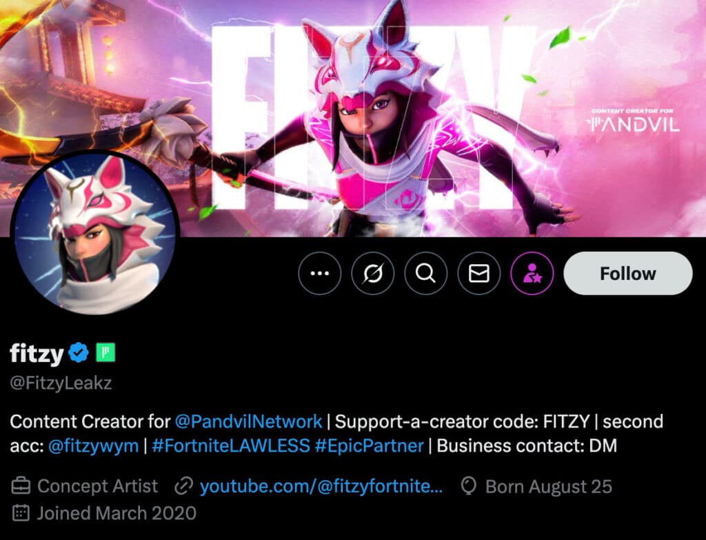The final Fortnite leaker on our list is Fitzy. Affiliated with Padvil Network, the popular Fortnite Creative company, Fitzy is constantly posting new updates, news and leaks around the game while also being an Epic Partner.